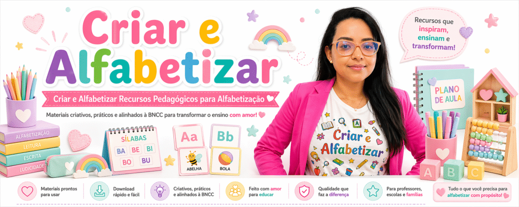Sou professora alfabetizadora na Rede Pública de Ensino em Campo Grande MS, desde 2012. Licenciada em Pedagogia com Especialização em Gestão Escolar. Amo alfabetizar e acompanhar de perto cada avanço das crianças nesse processo tão importante. Além da sala de aula, produzo materiais pedagógicos que auxiliam tanto professores quanto pais, tornando o aprendizado mais acessível e leve também em casa.