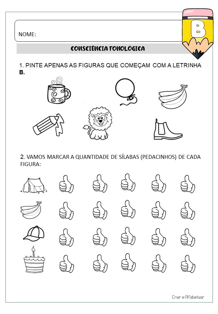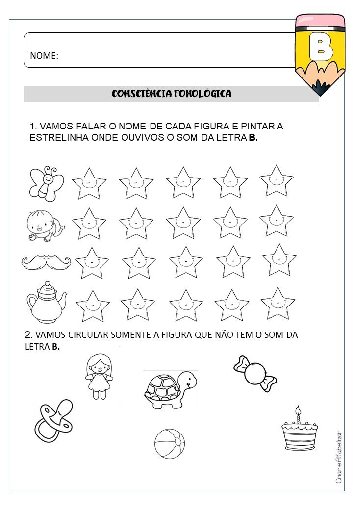 Nossa apostila trabalha *4 tipos de atividades de consciência fonológica*, por letra estudada, fundamentais para o processo de leitura: