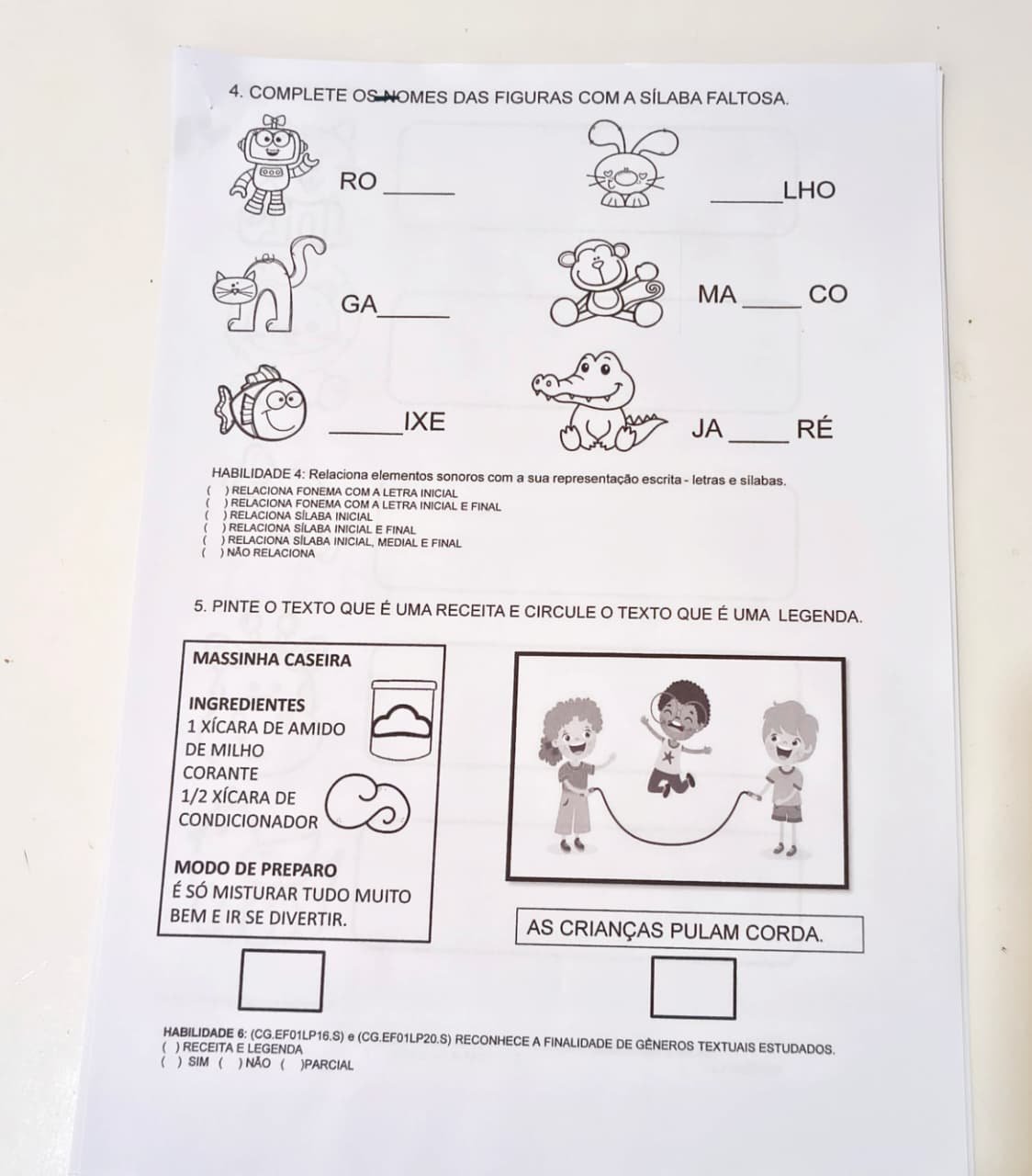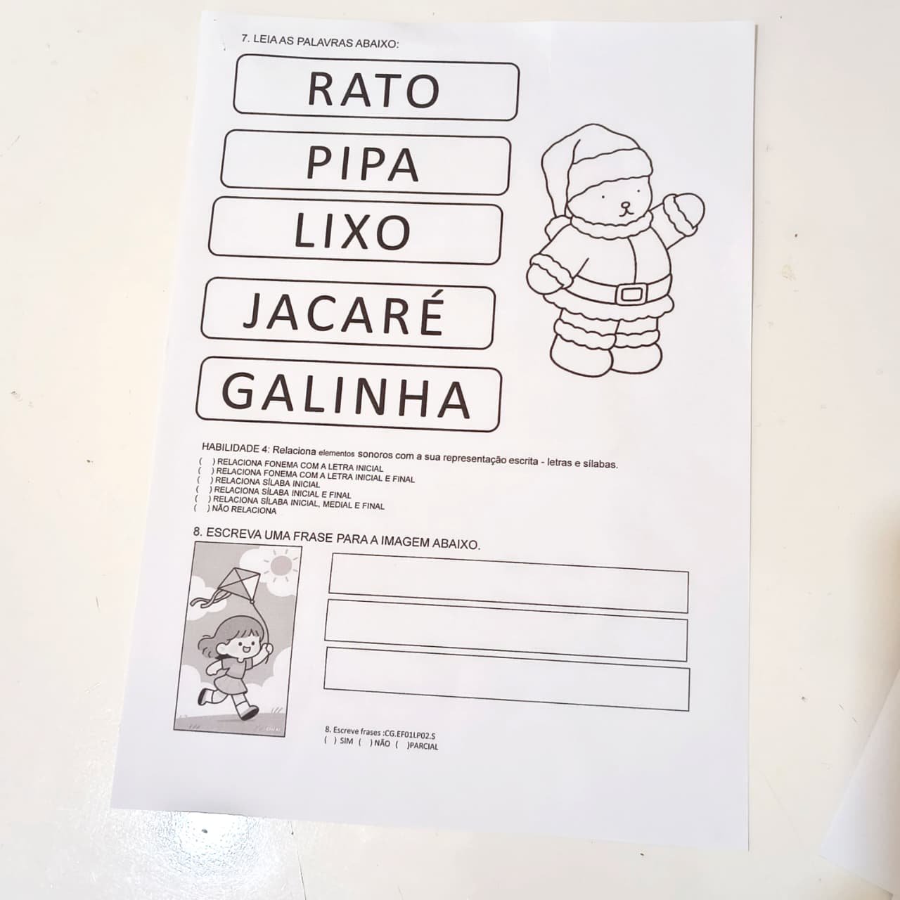 ✔ Escrita de palavras e frases (nos bimestres finais)