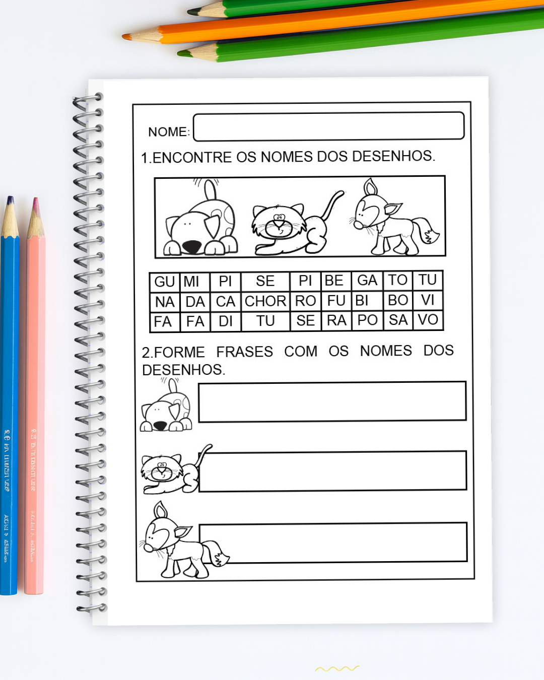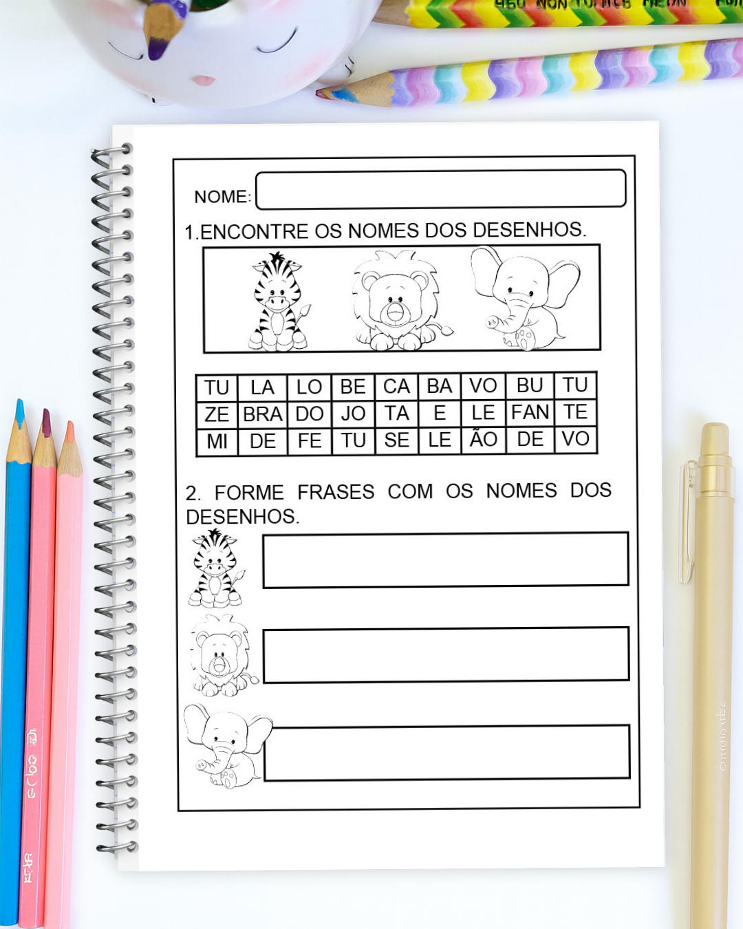📝 Ideal para a fase de alfabetização, estimula a associação entre imagens e palavras de forma lúdica. O que será trabalhado?