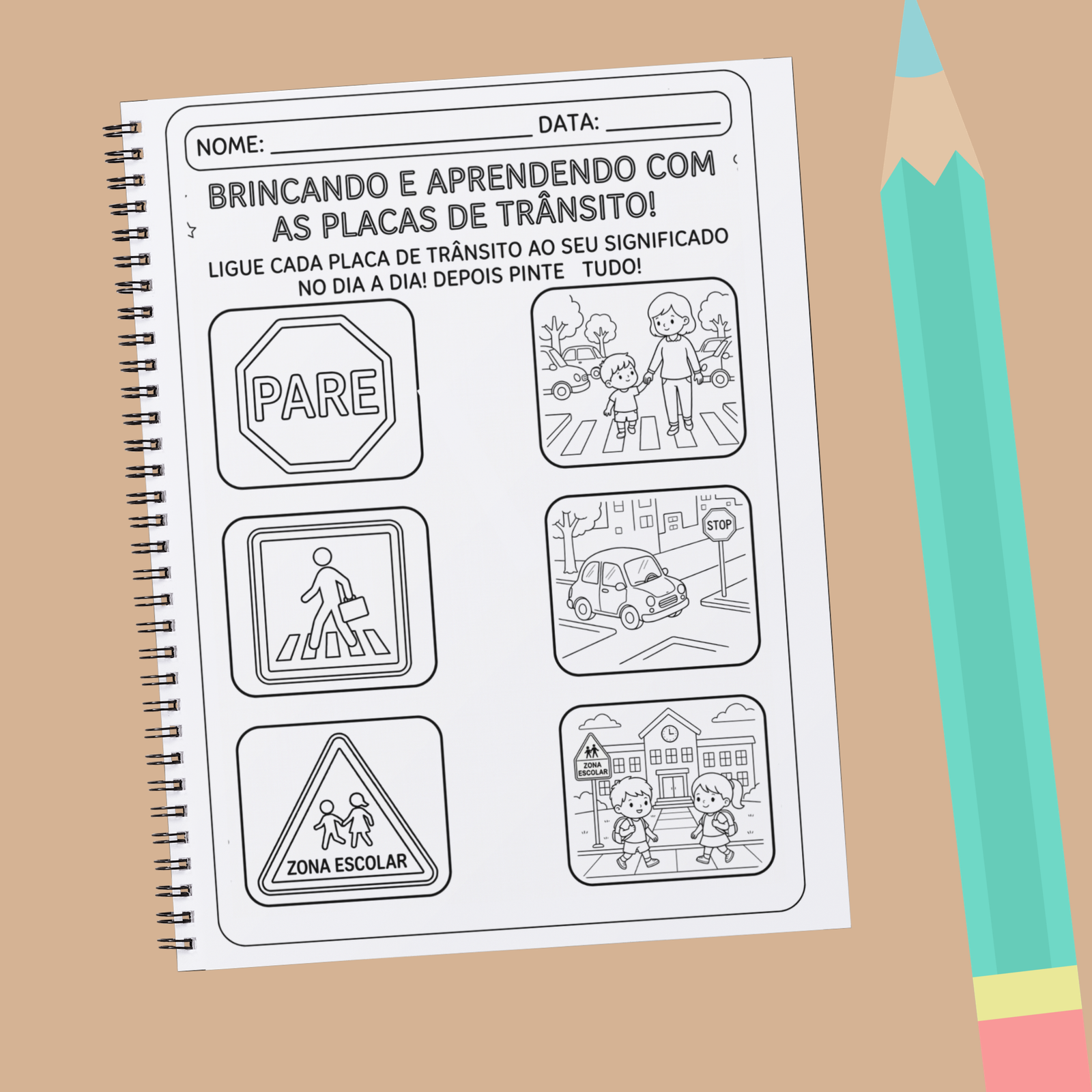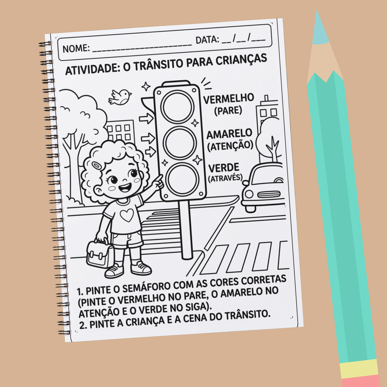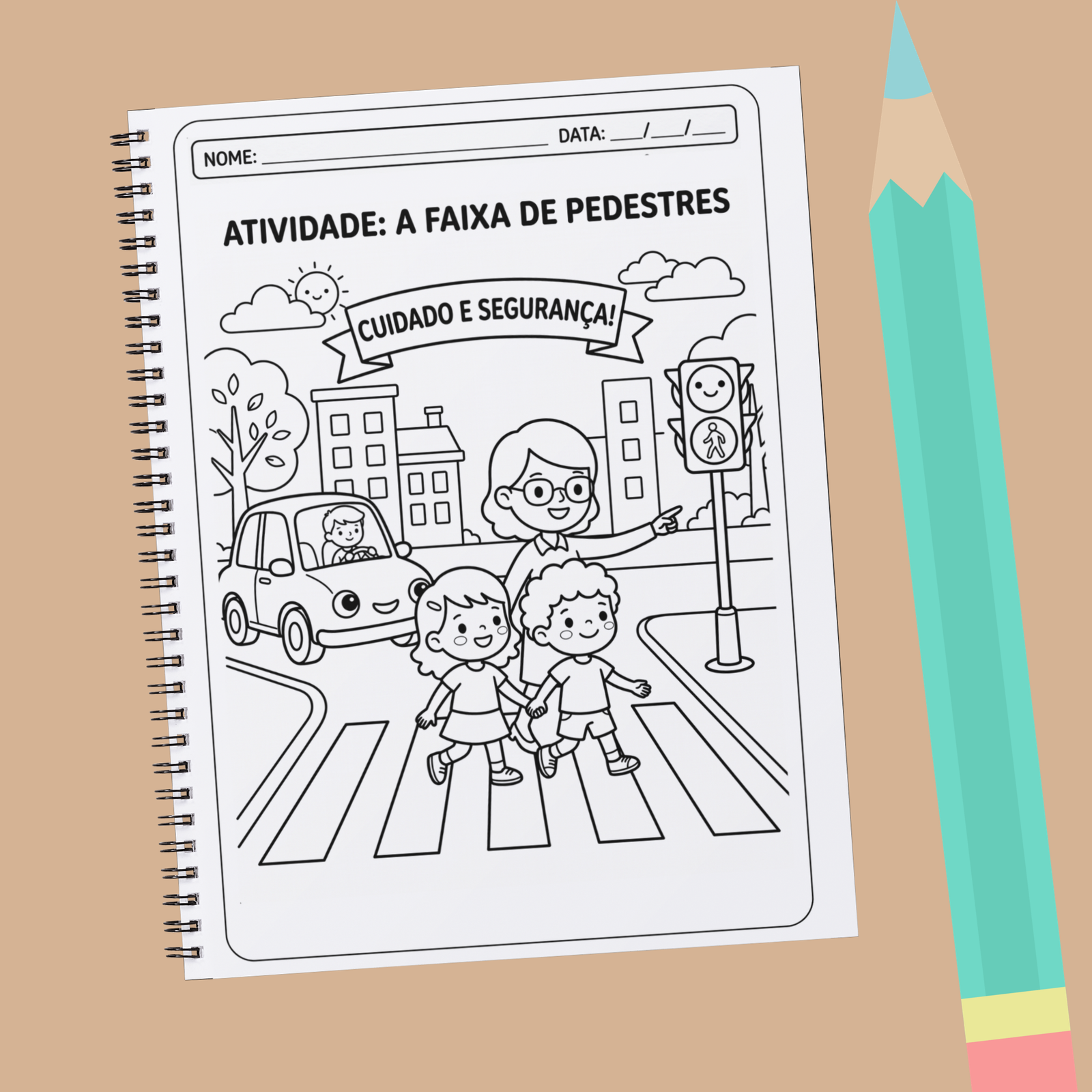 São *12 atividades pedagógicas* pensadas para desenvolver, de forma lúdica e significativa, a *consciência no trânsito*, abordando temas essenciais como: