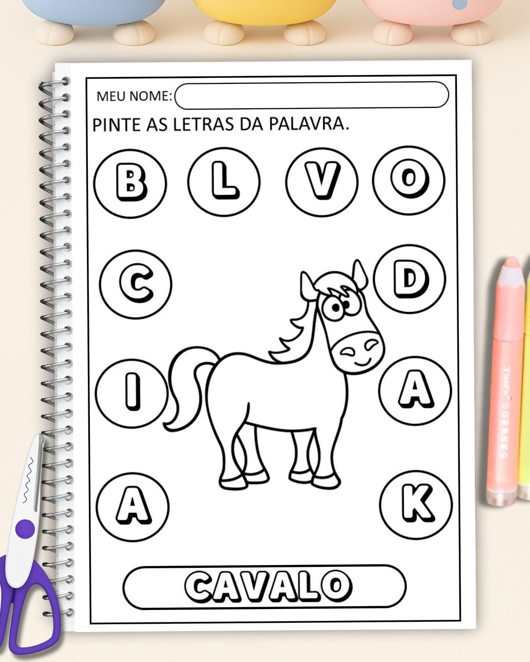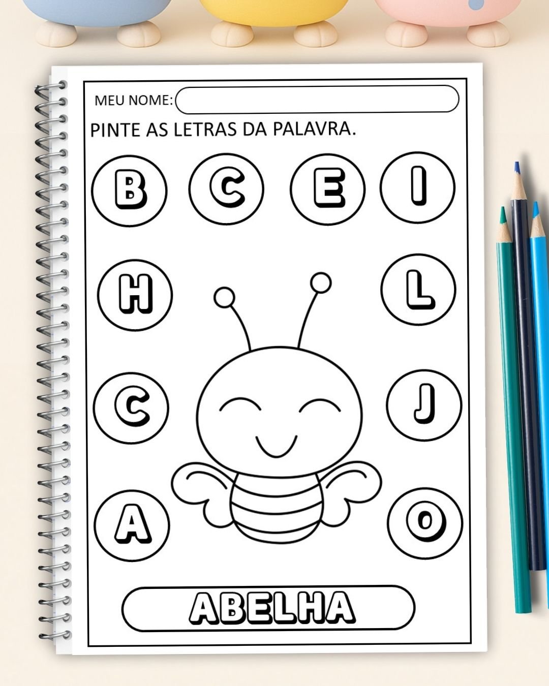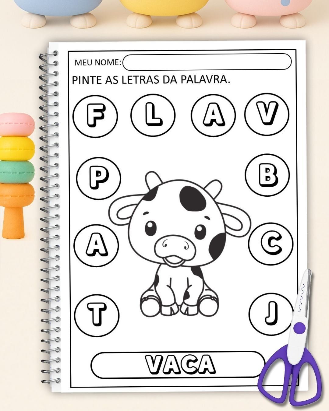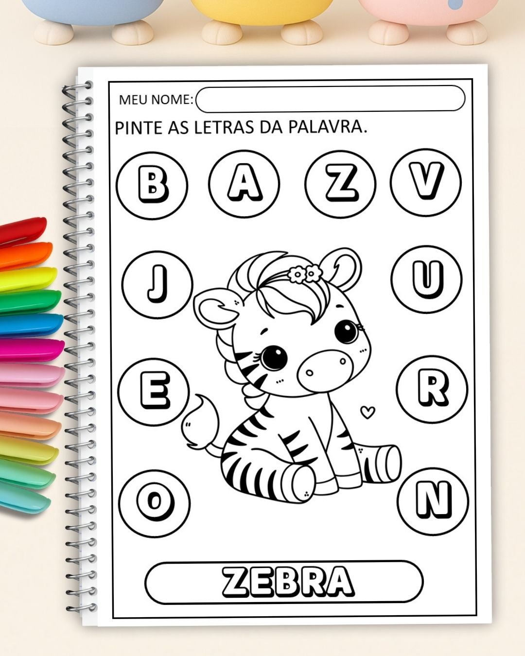 Quer uma atividade simples, fofa e eficiente para trabalhar o reconhecimento das letras com as crianças? Apresento o Pintando Letras: um arquivo em PDF com páginas prontas para imprimir, onde o aluno precisa identificar e pintar as letras da palavra correspondente à imagem.