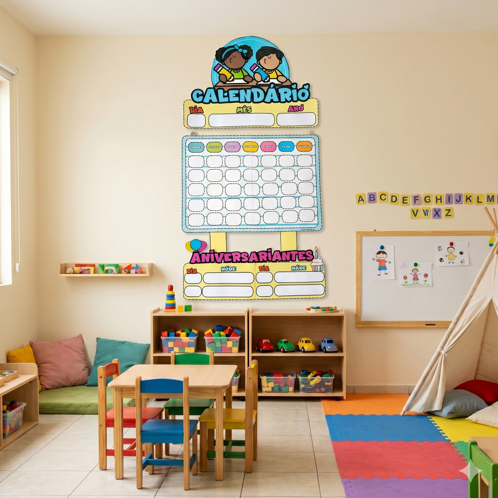 O Calendário Interativo é um recurso pedagógico prático e envolvente para trabalhar diariamente com a turma! Ideal para Educação Infantil e Anos Iniciais, ele auxilia na construção da noção de tempo de forma lúdica e significativa.