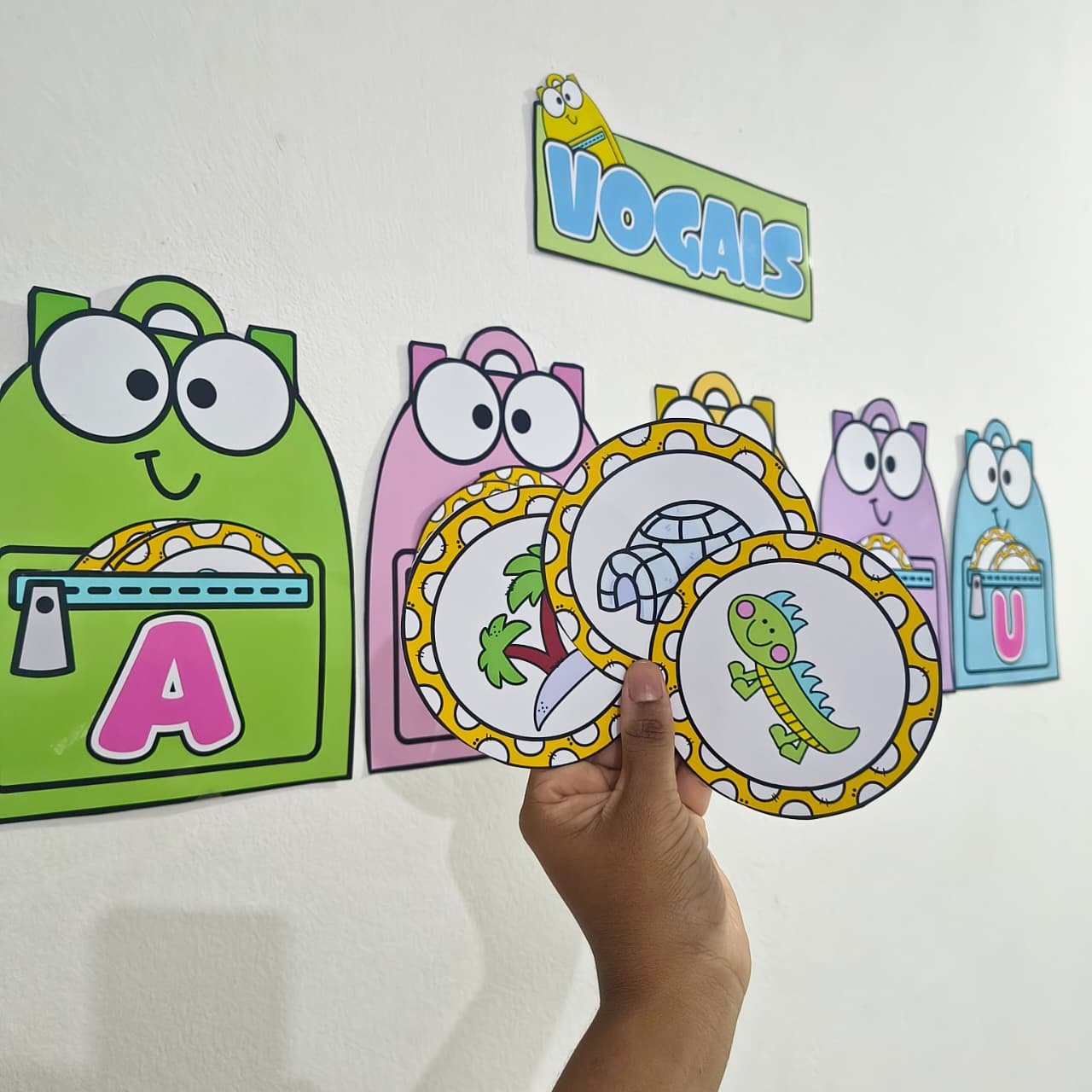 Com ela, você pode trabalhar o *som das vogais, a **identificação das letras* e a *associação por meio de imagens, favorecendo o desenvolvimento da **consciência fonológica* de forma lúdica e participativa.