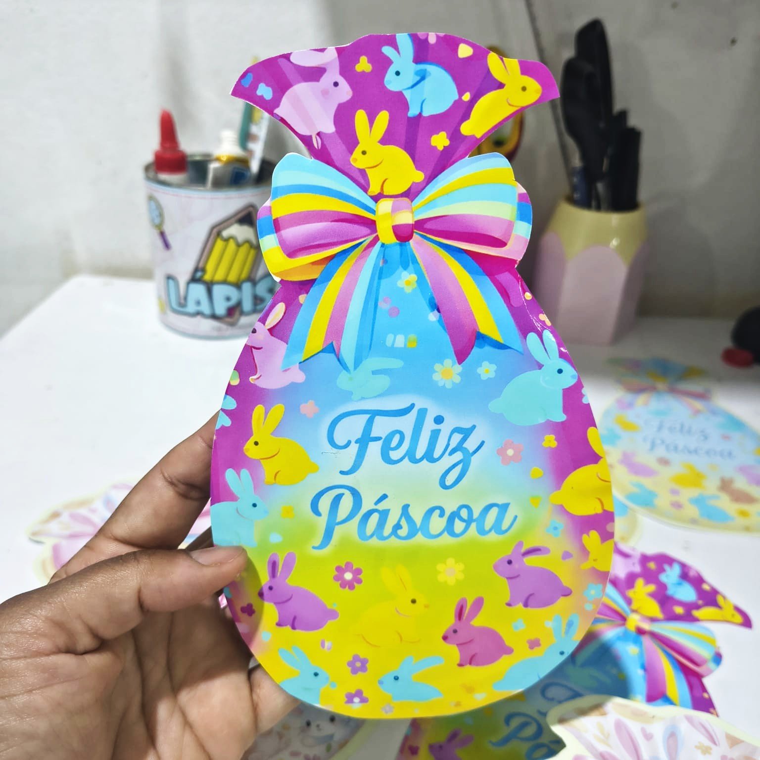 Encante seus alunos ou convidados com essa linda lembrancinha de Páscoa em formato de ovo, perfeita para colocar em pratinhos de 12 cm. Uma opção delicada e criativa para tornar a celebração da Páscoa ainda mais especial!
