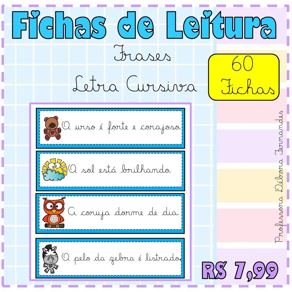Estimule o desenvolvimento da leitura de forma prática e eficiente com este material completo! As Fichas de Leitura com 60 frases em letra cursiva foram cuidadosamente elaboradas para auxiliar no processo de alfabetização, promovendo fluência, reconhecimento das palavras e compreensão textual.