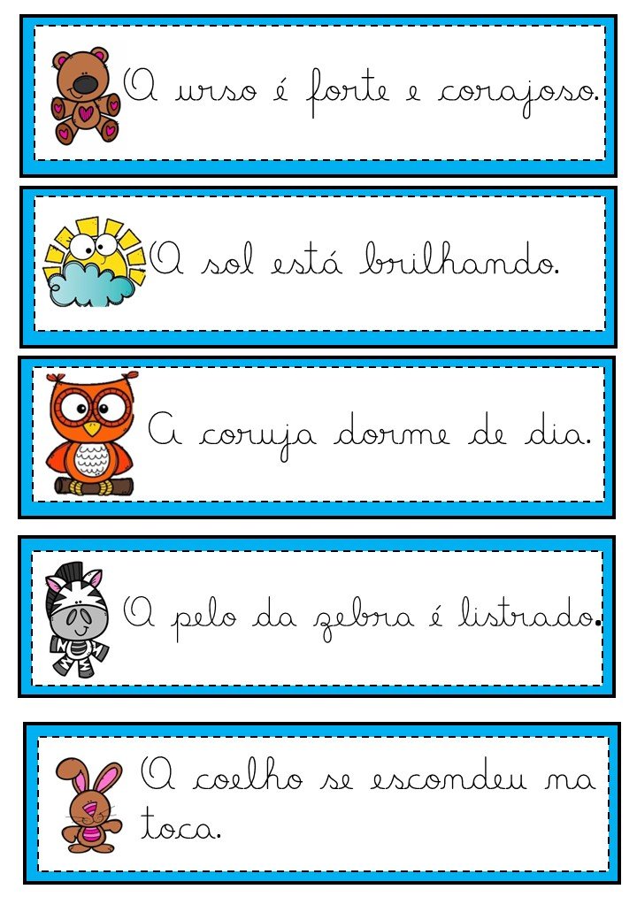 60 fichas com frases simples e progressivas