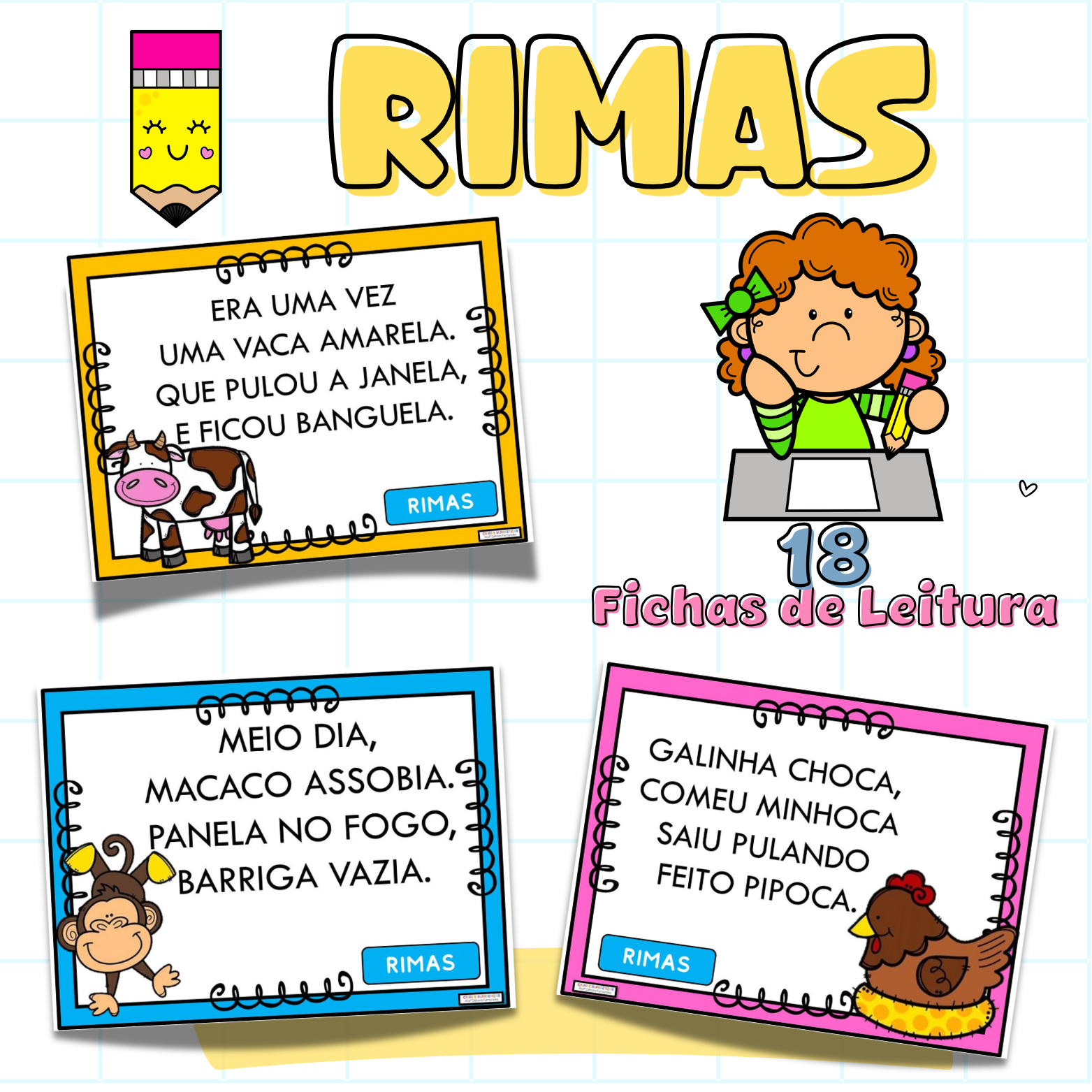 Torne o aprendizado da leitura mais divertido e envolvente com estas 18 fichas de leitura com textos curtos e rimados! Desenvolvidas especialmente para auxiliar no processo de alfabetização, as rimas despertam o interesse das crianças e fortalecem a consciência fonológica.