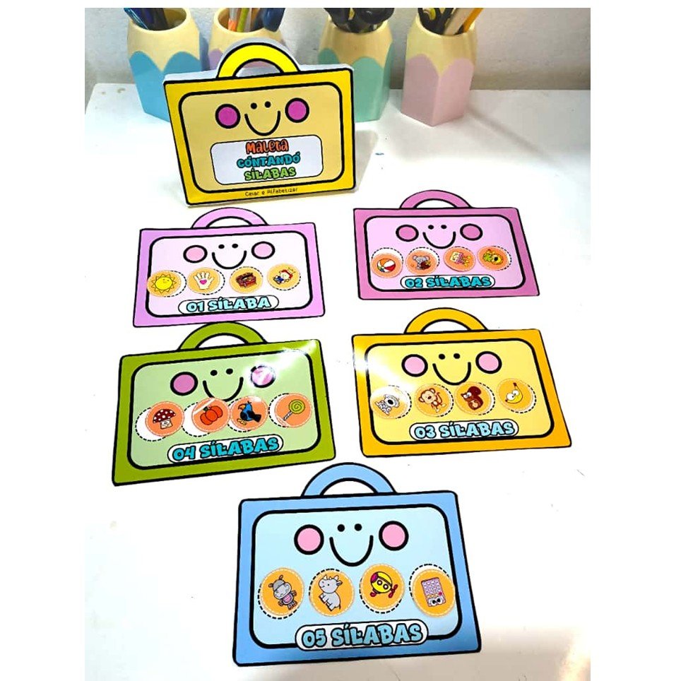 🧳 São 5 maletinhas super divertidas para trabalhar a consciência fonológica e silábica com as crianças!